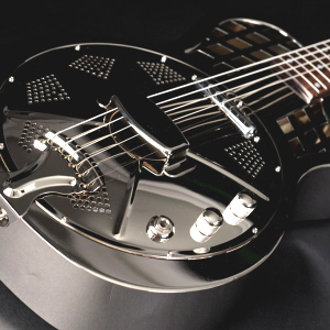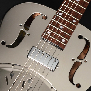 Body: Nickel-Plated Bell Brass, Nickel Neck: Mahogany Fretboard: Rosewood Cone Material: Alumium Cone Brand: Single cone Cone Size: 9.5" Coverplate: Bell Brass, Nickel Headstock Overlay: N/A Tailpiece: Bell Brass Bridge: Hard Maple Position Markers M.O.P. Dot Tuners: Nickel Nut, Width: 44 mm Scale Length: 63,4cm Pickup: Tesla Mini Humbucker, 1 volume, 1 tone