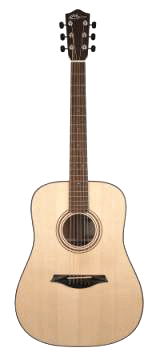 Specs: body style : dreadnought shape top wood : solid Engelmann spruce back and sides wood : mahogany neck wood : mahogany fingerboard wood : Indian rosewood MOP dots bridge wood : Indian rosewood top finish : glossy neck finish : glossy pickguard : transparent machine heads : nickel 372-AS saddle and nut : bone strings : Mayson CBR-12 coated 012-054 truss rod : double action scale length : 645mm body length : 550mm body width : 390mm body depth : 122mm top nut width : 45mm