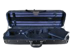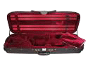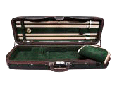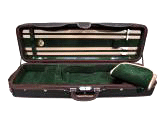 violin outfit 1/2, oil varnish, red/brown, case, ebony frog bow, finetuner tailpieceslightly shaded oil varnish by hand, scraped top. shaped case and ebony frog bow. colour: redbrown ebony fingerboard, pegs. medium flamed back & sides.