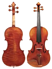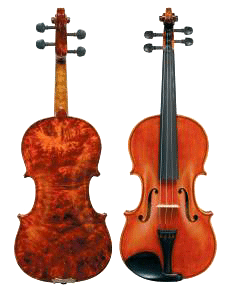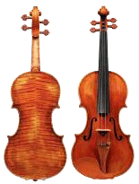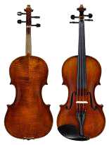 First class spruce top. Beautiful flamed maple back and sides. Naturally dried wood for many years. With ebony/boxwood or rosewood fittings Perfect craftsmanship. completely made and varnished by hand. Best oil varnish in gold/brown or red/brown. with nice oblong case and bow.