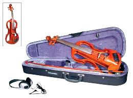 electric violin, traditional shape, pre-amp with volume and tone, with bow, case and headphone