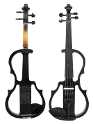 electric violin, ebony fittings, black, with bow, oblong case, headphone and IT-6 digital tuner