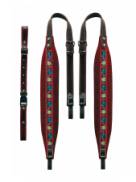 Akkordeon-Gurte, für 120 Bässe 102-107 x 8,0cm, mit Schlaufe, ""Tiroler"", Leder & roter Samt