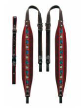 Akkordeon-Gurte, für 48-72 Bässe, 82-87 x 6,0cm, mit Schlaufe, ""Tiroler"", Leder & roter Samt