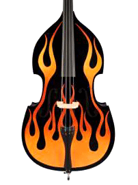 double bass 3/4, plywood, varnish glossy black with artistic flames