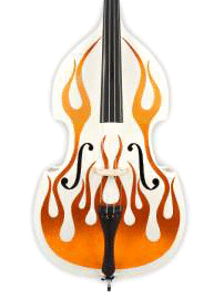 double bass 3/4, plywood, varnish glossy white with artistic flames