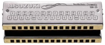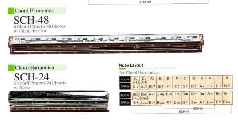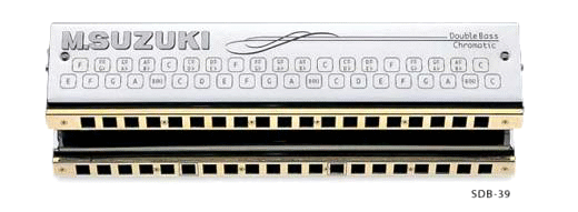 Suzuki bietet auch Doppel-Bass-Mundharmonikas für das Ensemble Spiel in Form zweier Modelle an.