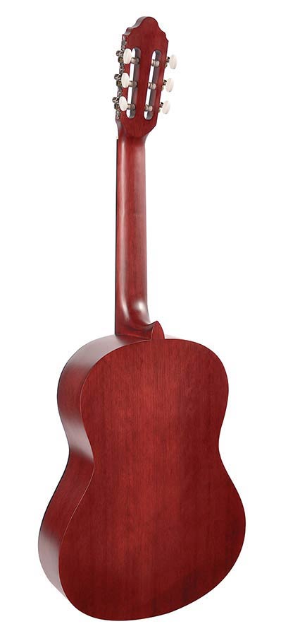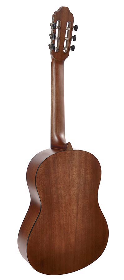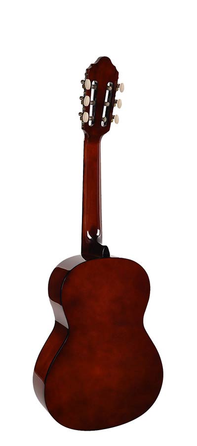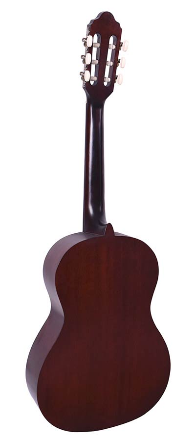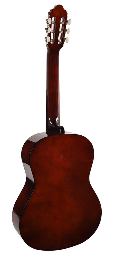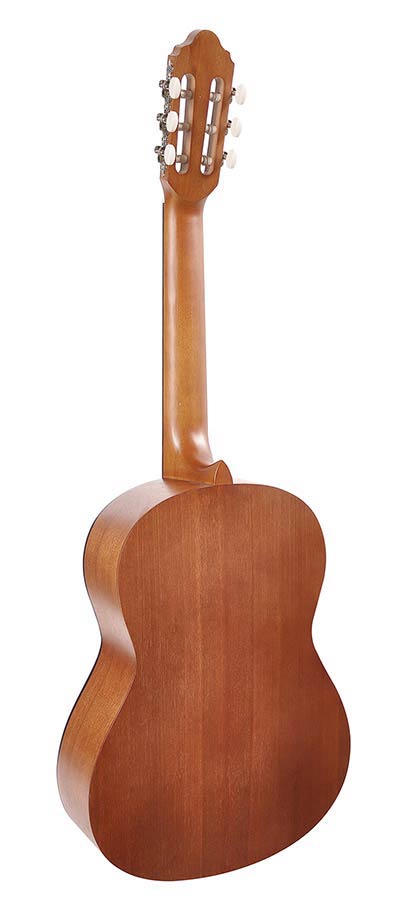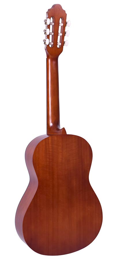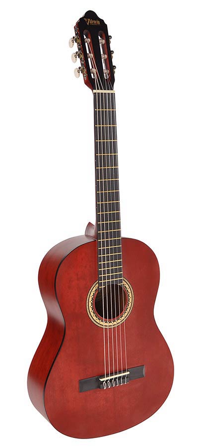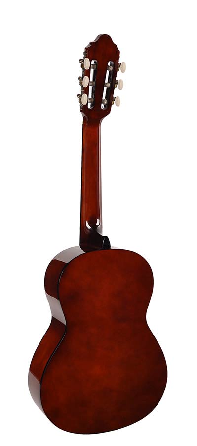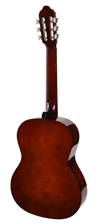 Featuring a Linden top, back and sides, Nato neck, ebonized Maple fingerboard and bridge the Valencia Series 100 provides you with a clear and resonant voice. Specs: Size : 1/2 Scale : 560mm Top nut : 45mm Top : linden Back & sides : linden Top binding : ABS, black Side binding : ABS, black Neck : nato Fingerboard : ebonized maple Neck binding : ABS, black Neck side dots : yes Fret wire : 19 frets, brass Bridge : ebonized maple Bridge saddle : plastic Machine heads : nickel plated with white buttons Finish : glossy