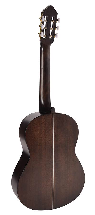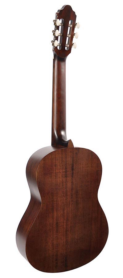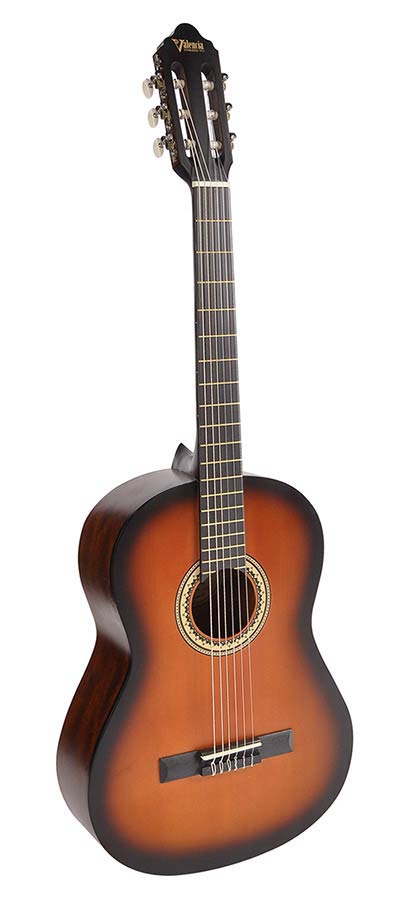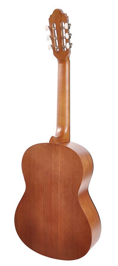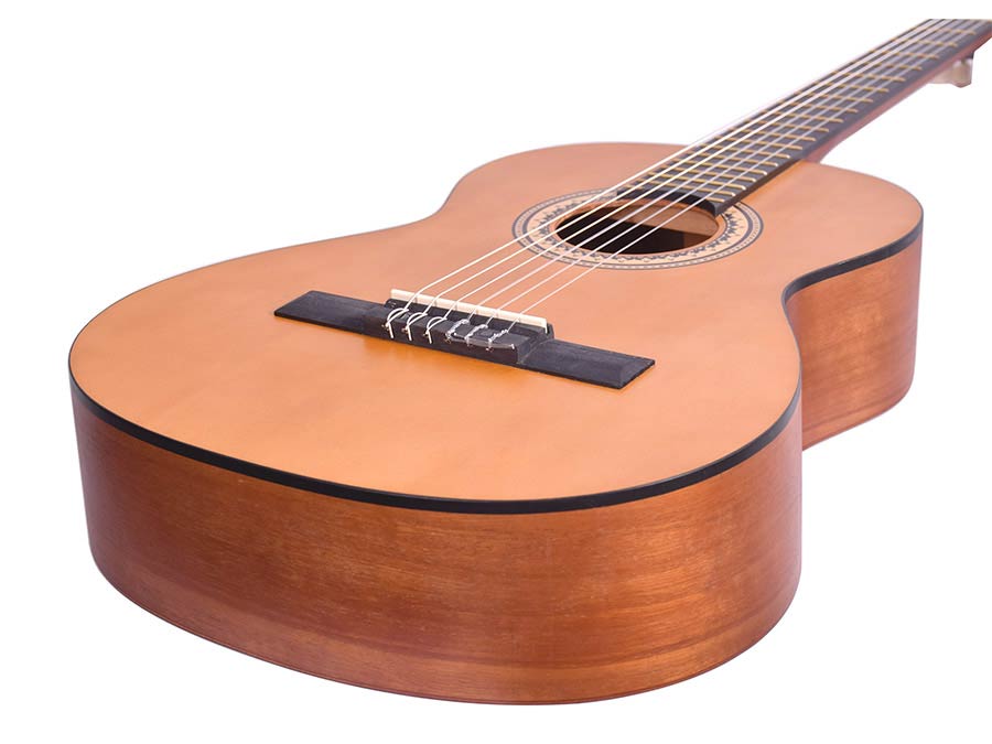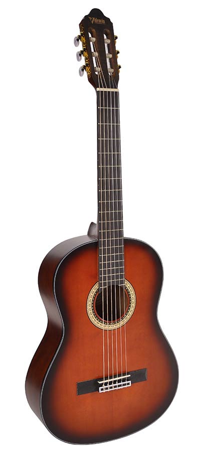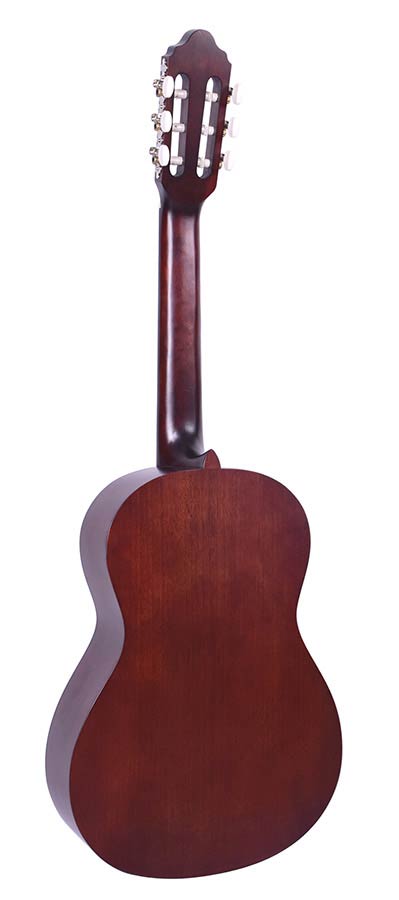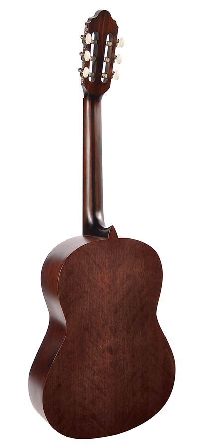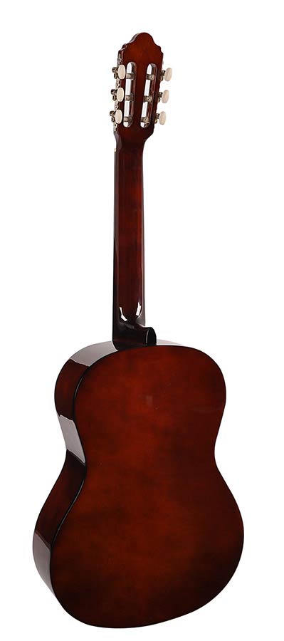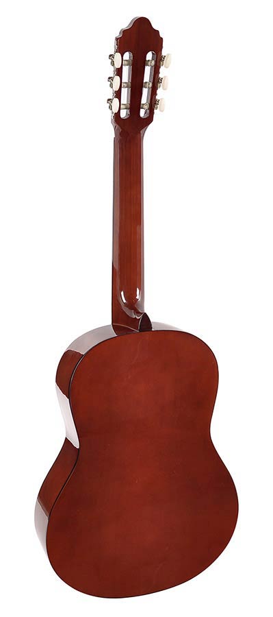 Featuring a Linden top, back and sides, Nato neck, ebonized Maple fingerboard and bridge the Valencia Series 100 provides you with a clear and resonant voice. Specs: Size : 1/2 Scale : 560mm Top nut : 45mm Top : linden Back & sides : linden Top binding : ABS, black Side binding : ABS, black Neck : nato Fingerboard : ebonized maple Neck binding : ABS, black Neck side dots : yes Fret wire : 19 frets, brass Bridge : ebonized maple Bridge saddle : plastic Machine heads : nickel plated with white buttons Finish : glossy