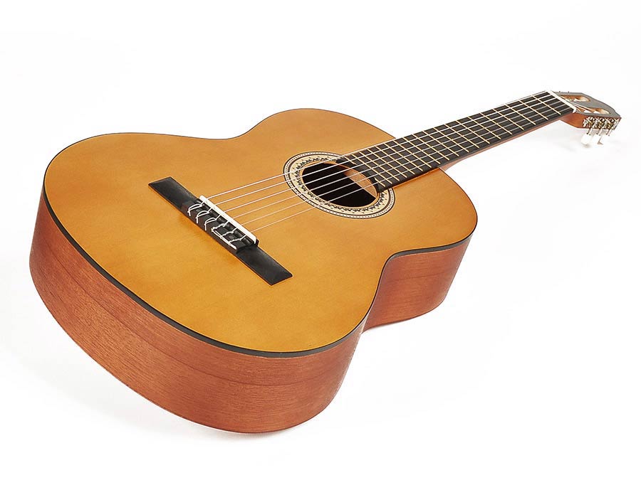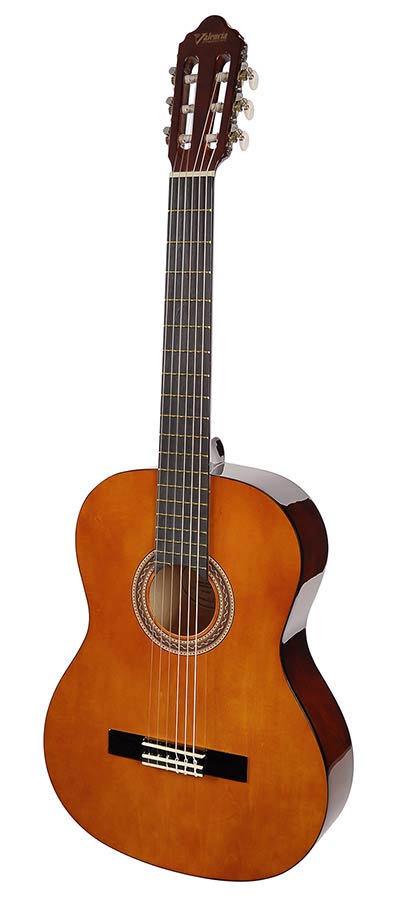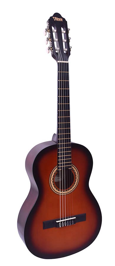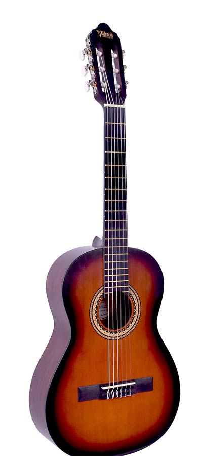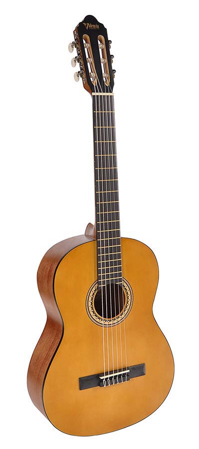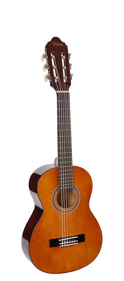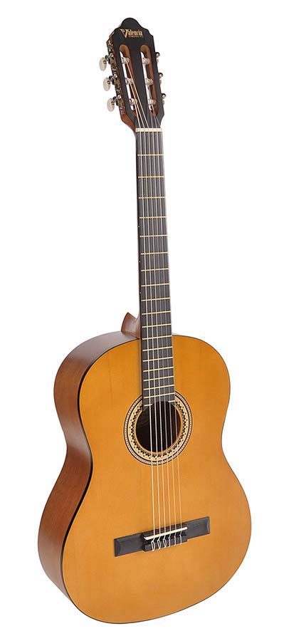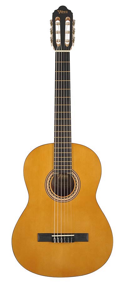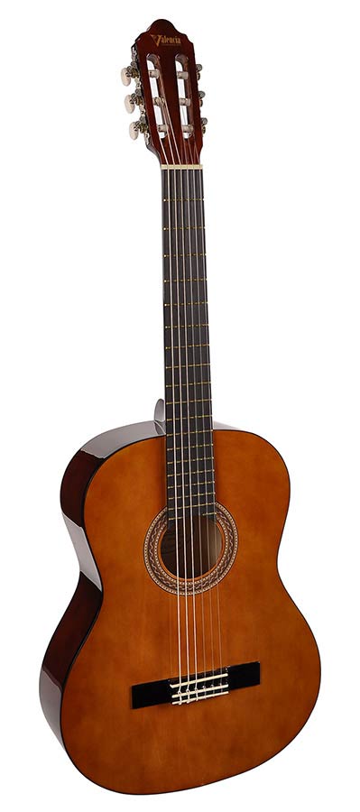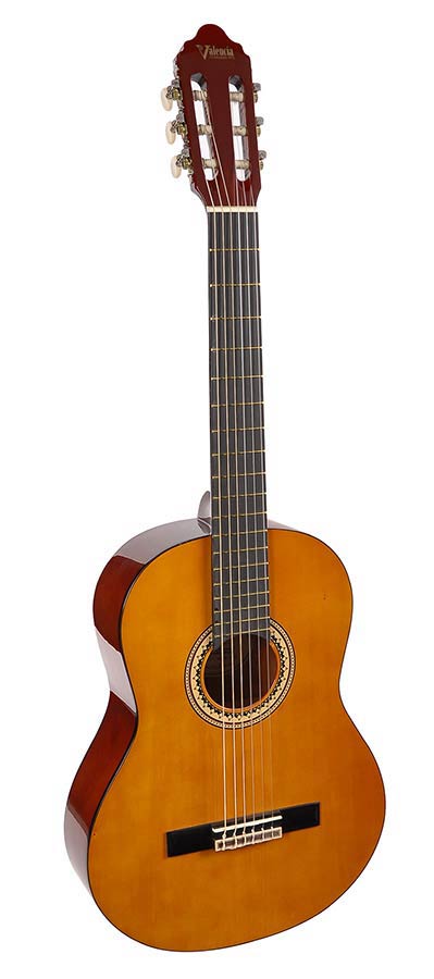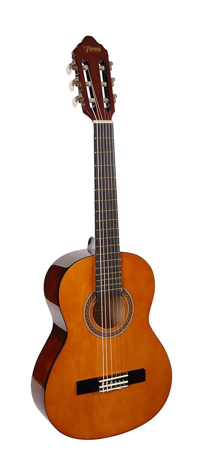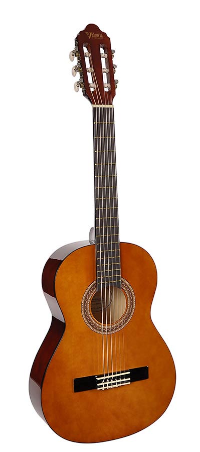 An excellent first nylon string classical guitar! The Valencia Series 100 is a fully featured, nylon string guitar that’s affordable enough for any guitarist. Its neck scale length allows you to play with true classical finger style; just what you need to develop proper playing technique. Whether you’re a very young player or a little older the Series 100 range offers a choice of instrument sizes to ensure a correct fit for all players.