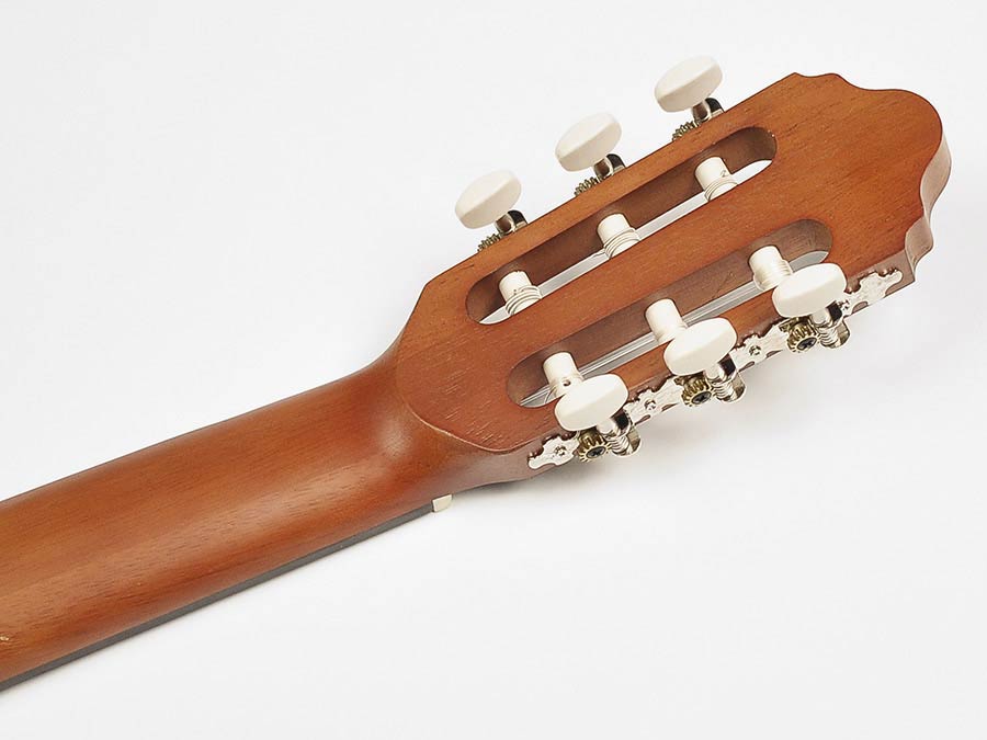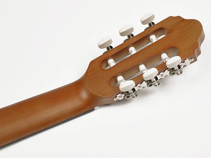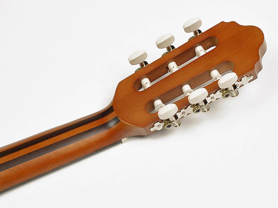 Neck : jabon Fingerboard : ebonized mahogany Neck binding : ABS, black Neck side Dots : yes Fret wire : 19 frets, brass Bridge : mahogany Bridge saddle : plastic Rosette decoration : Valencia 'Bat' motif Machine heads : traditional nickel plated with cream buttons Scale : 650mm Nut width : 52mm Finish : satin finish