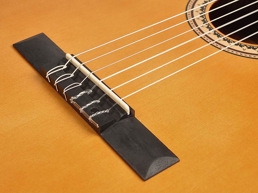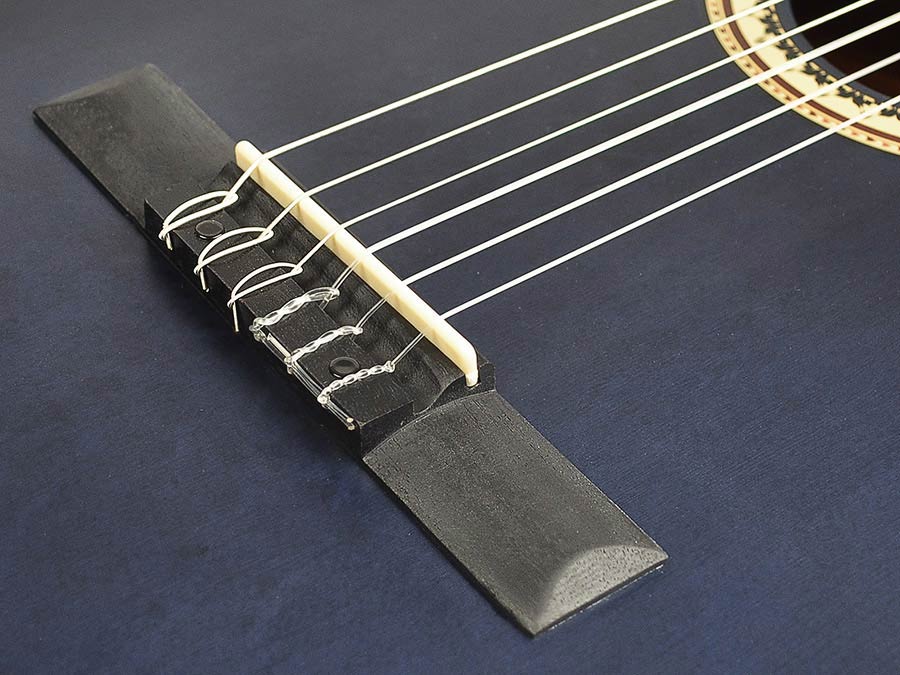 Fingerboard : ebonized mahogany Neck binding : ABS, black Neck side Dots : yes Fret wire : 19 frets, brass Bridge : ebonized mahogany Bridge saddle : plastic Rosette decoration : Valencia 'Bat' motif Machine heads : traditional nickel plated with creambuttons Scale : 650mm Nut width : 45mm Finish : satin finish