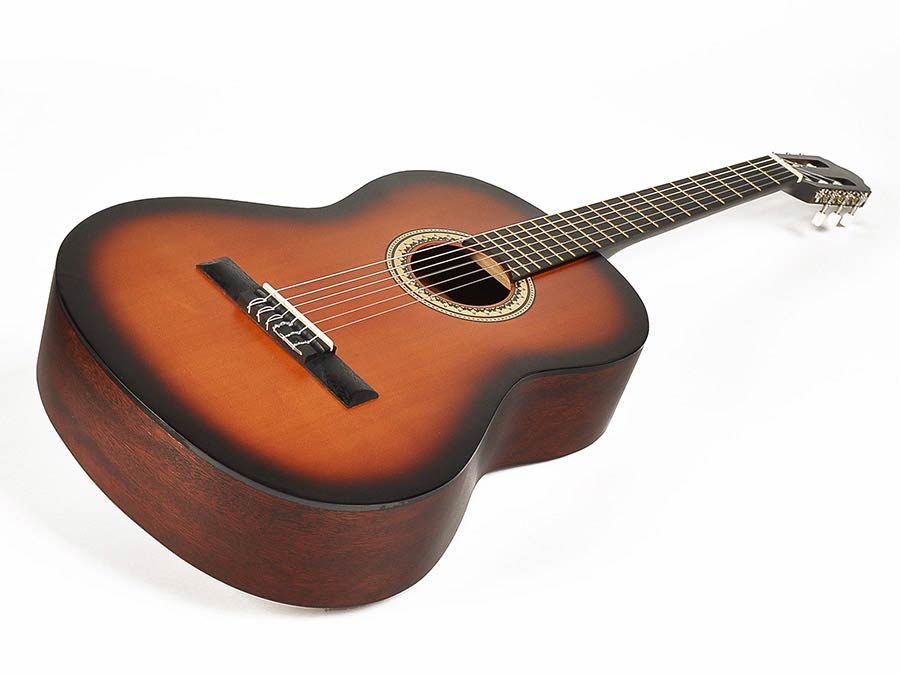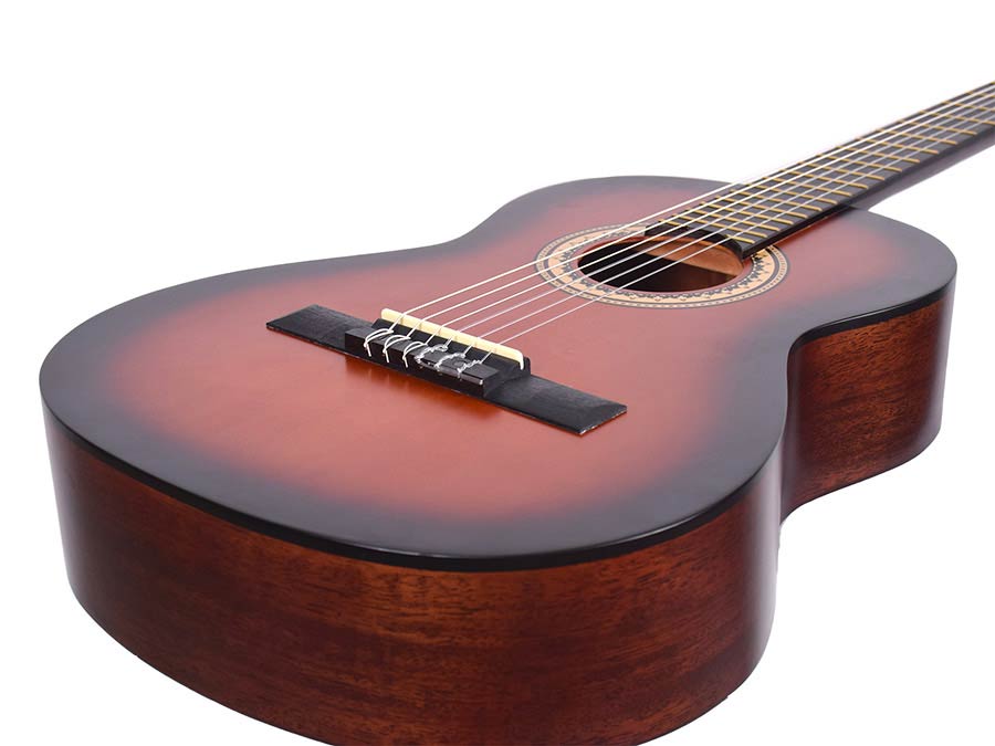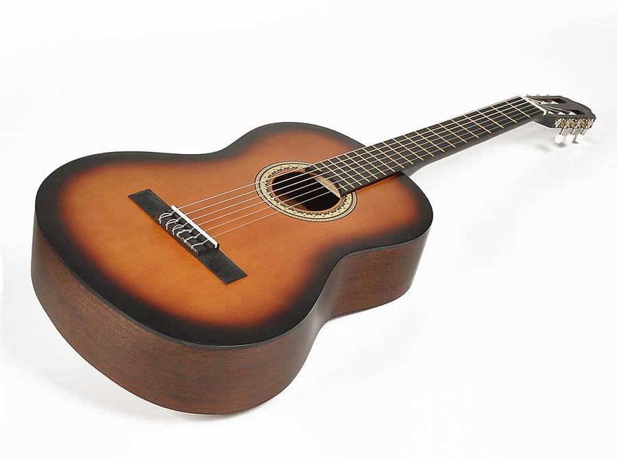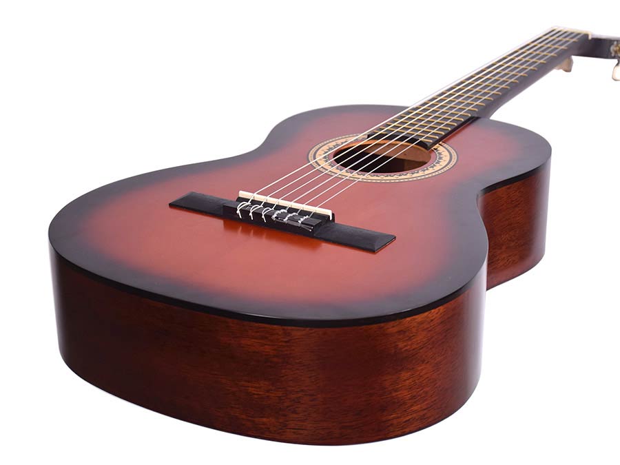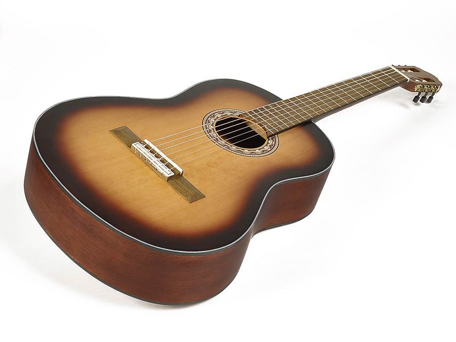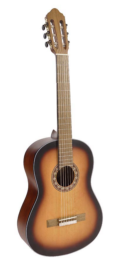 classic guitar, spruce top, nato b&s, mahogany fb, 3/4 size, 580mm scale, classic sunburst