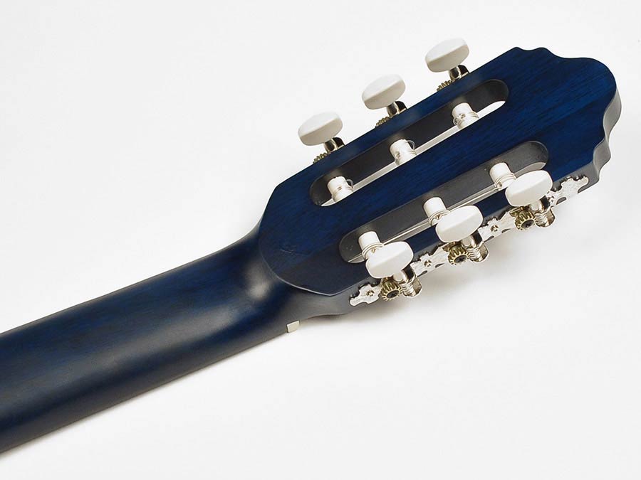 Konzertgitarre, Fichtendecke, Nato B&Z und Mahagoni Griffbrett, transparent blau classic guitar, spruce top, nato b&s, mahogany fb, transparent blue