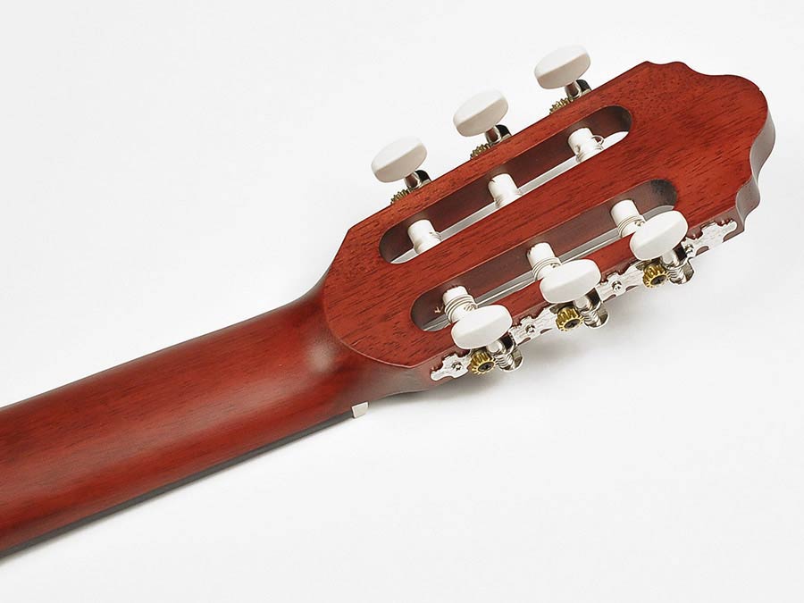 For superior stability and strength, the necks of thesemodels feature two central, reinforcing strips of Rosewood installed along the entire neck length. All Series 200 models feature an arched back for increased tonal response and projection, a unique attribute amongst guitars in this price range and particularly within all 3/4 size guitars on the market.