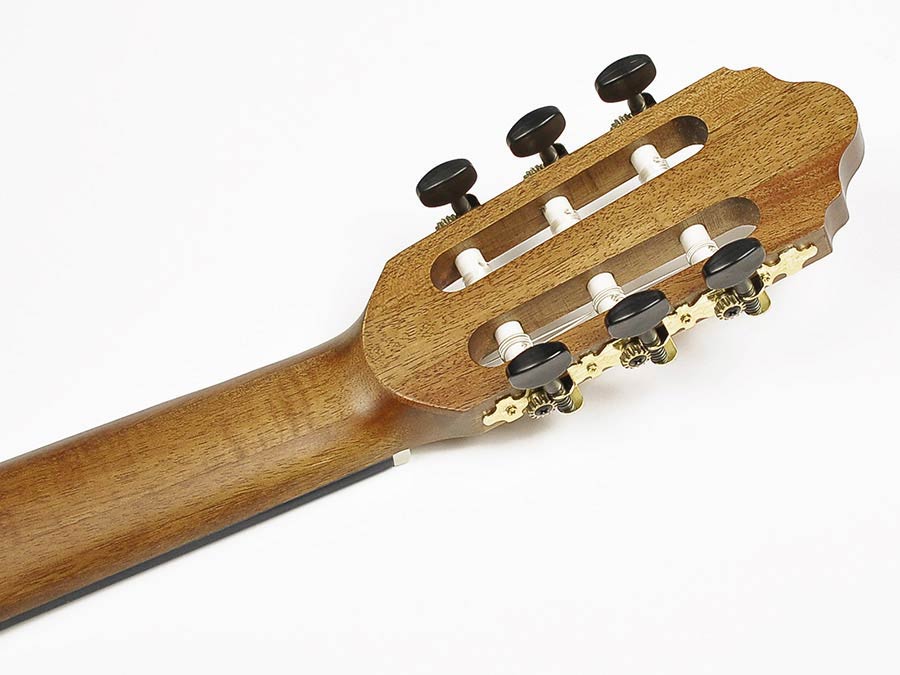 The Series 200 range is complemented by the introduction of our newly developed “Hybrid”, Thin-Neck model. Featuring a 45mm neck width (at nut) with 650mm (25 5/8”) scale length on a standard size body, the Hybrid is especially designed to accommodate the smaller hands of some beginner players. For superior stability and strength the neck of this model features two central reinforcing strips of rosewood installed longitudinally along the entire neck length.